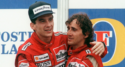 In January 1988, I accompanied Jean Todt across the Sahara, shadowing Paris-Dakar in the Peugeot team aircraft. Early one morning, Ari Vatanen’s 205 Turbo 16 was stolen from the bivouac at Bamako in Mali. I joined in a Keystone Cops chase to retrieve the car, but this came too late for rally favourite Vatanen to comply with his designated start time. However – after Todt intervened by lodging an appeal accompanied by the obligatory briefcase full of cash – the organisers allowed Vatanen to set off on a headlong dash to regain his lead. Hearing of this, the then FISA president Jean-Marie Balestre was enraged and issued a statement from his HQ at Place de la Concorde in Paris, banning Vatanen from the rally. The statement reached us – Todt and a small group of newsmen – via satellite as we stood in the shade of an aircraft wing on a desert airstrip in Mauretania. Napoleon "Jean Todt is little more than a small-time navigator, who now finds himself a member of the international jet set, with an apartment on the Avenue Foch," thundered Balestre. "He is the Napoleon of the dunes and the Bonaparte of the pyramids." Quick as a flash, Todt retorted: "That has to be better than being the Emperor Bokassa of the Place de la Concorde." And so this hilarious spat rapidly sent waves of laughter around the world. Returning to the film, it includes insights from John Bisignano (American pit lane reporter for ESPN), Reginaldo Leme (Brazilian journalist and TV commentator) and Pierre van Vliet (Belgian sports journalist and TV commentator, who hit it off with both Senna and Prost). Also reminiscing are Professor Sid Watkins (distinguished British neurosurgeon, leader of F1’s on-track medical team – 1978-2005, president of the FIA Institute for Motor Sport Safety, close friend of Senna), Frank Williams (British founder of the final F1 team for which Senna drove) and Richard Williams (British author of The Death of Ayrton Senna and chief sports writer of The Guardian). Neyde Senna (Ayrton’s mother) and Viviane Senna (Ayrton’s sister) make brave contributions too. Remain alert throughout, and you’ll be rewarded in all sorts of ways. At one point the loveable mouth of motor racing Murray Walker bursts out of the soundtrack – “Oh, my goodness, this is fantastic!” – only to be tempered by a more suave observation – “I think we are watching the arrival of Ayrton Senna, a truly staggering talent.” – from James Hunt. What good company they both were. Fangio And, in another quick cut, I think, my god, that’s Fangio embracing Senna up there on the podium. I catch my breath as I recall locking eyes with the quiet-spoken bright-eyed Argentino, five-times world champion, while I interviewed him in his mid-70s. Such courtesy, clarity, recall, enthusiasm, engagement: “And women rule our lives, don’t they?" Juan-Manuel Fangio would have been 100 years old this year. Four-times F1 champion driver Alain Prost won more titles than any other driver except Fangio and Michael Schumacher, and Prost’s record 51 victories were only overtaken by Schumacher in 2001. Noted for his smooth style, conserving tyres and brakes, Prost nevertheless was drawn into feuds with rivals, including Nelson Piquet, Nigel Mansell and most notably Ayrton Senna with whom he had a series of contentious skirmishes. After three seasons with Team Lotus, Senna joined Prost with his blessing at McLaren in 1988. In Portugal, Prost made the better start but Senna pushed past him onto the first corner. When Prost retaliated and went to pass Senna at the end of the lap, Senna moved to squeeze him into the wall at 180 mph/290 km/h. However, Prost stuck to his guns and went on to win. In a year when the 11 best scores were counted, the pair won 15 of 16 races. Though Prost scored more points overall, Senna was champion with eight wins to seven. Prost's attempt to put a brave face on it while in the embrace of his delighted team mate was not hugely successful.