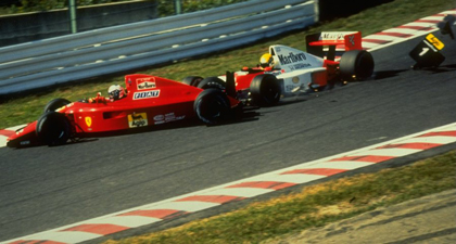 In the 1991 German Grand Prix, while Mansell (Williams-Renault) was running away with the lead, Prost (Ferrari) and Senna (McLaren-Honda) were disputing fourth place. On the way into the first chicane on lap 37, Prost was the quicker and attempted to overtake Senna around the outside. Senna would have none of it, so Prost went off, stalling his engine. Senna later faced the poetic justice of running out of fuel on the final lap for the second race in succession. Their rivalry was manifest both in their on-track battles and in a war of words. So we hear Prost declaring: “Ayrton has a small problem He thinks that he can’t kill himself. And I think that’s very dangerous.” Senna for his part asserts: “You are competing to win. And, if you no longer go for a gap, you are no longer a racing driver.”